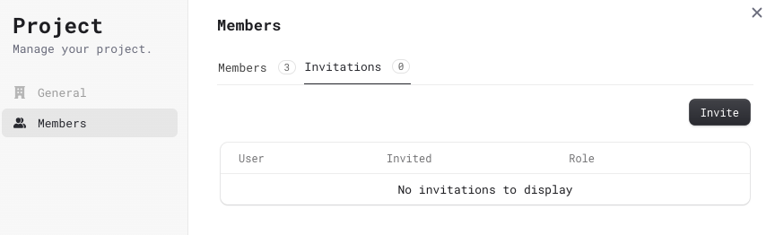 - In the ensuing popup, you can manage the Project’s details, invite new users and change permission levels of existing users.